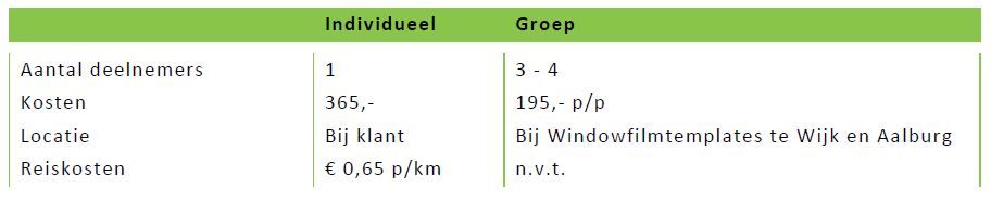 1 dag training voor achterruiten en alle zijruiten vanaf de b-stijl van een personenauto.